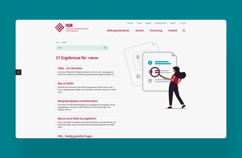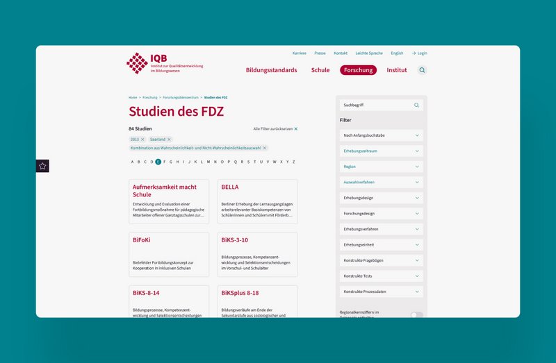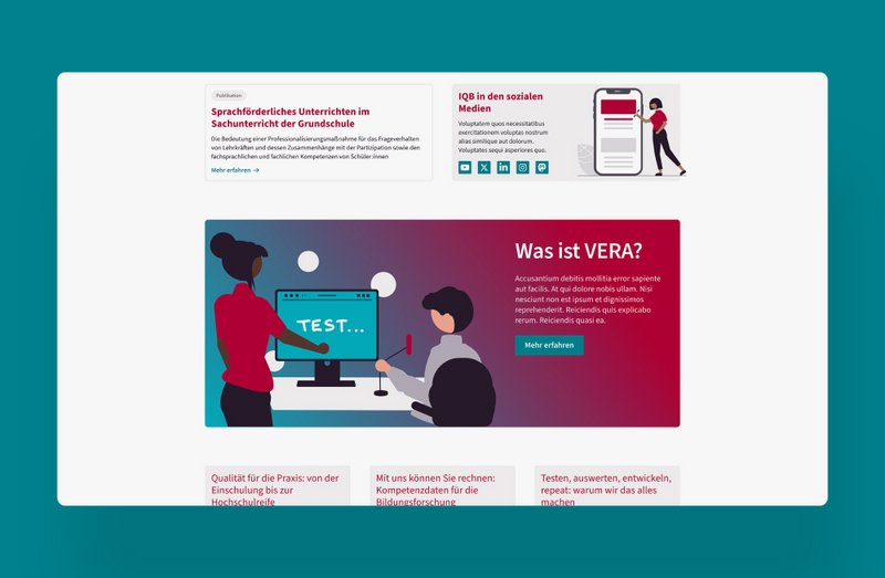 Das IQB stand vor der Herausforderung, sein institutionelles Erscheinungsbild und seinen digitalen Auftritt zeitgemäß weiterzuentwickeln. Ziel war es, die wissenschaftliche Expertise, die gesellschaftliche Relevanz und die vielfältigen Angebote des Instituts künftig klarer und moderner zu kommunizieren. Dabei sollte die bestehende Website nicht nur inhaltlich und gestalterisch überarbeitet, sondern auch funktional neu gedacht werden, inklusive barrierefreier Nutzung und einer adressatengerechten Navigation.