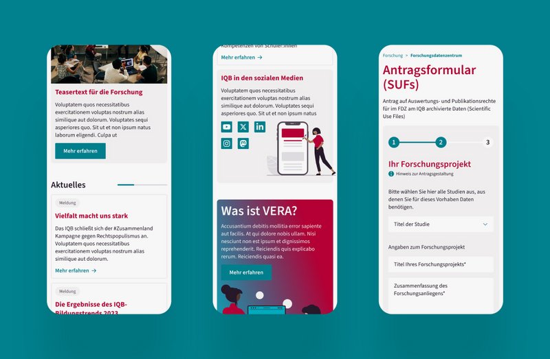 In strategischen Workshops definierten wir gemeinsam Ziele und Zielgruppen, entwickelten ein überarbeitetes Corporate Design mit neuem Logo und maßgeschneiderten Illustrationen. Durch durchdachtes UX/UI-Design entstanden klare Strukturen und eine intuitive Navigation, die wissenschaftliche Inhalte zugänglich macht. Das Ergebnis: Eine modernes Erscheinungsbild und nutzerzentrierte Website mit barrierefreier Navigation, die vielschichtige Forschungsinhalte transparent und verständlich präsentiert. Die Kompetenz und gesellschaftliche Bedeutung des IQB wird nun klarer und zugänglicher kommuniziert, der Zugang zu Bildungsressourcen erleichtert und das Institut als attraktiver Arbeitgeber präsentiert.
