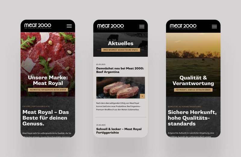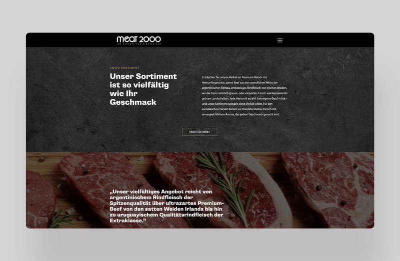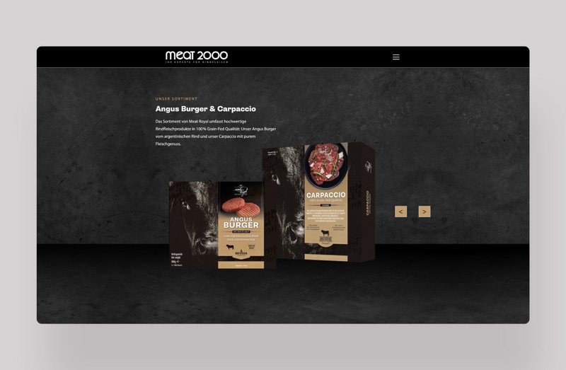 Goldland entwickelte für Meat 2000 einen durchgängigen, modernen Markenauftritt mit hohem Wiedererkennungswert. Das dynamische Projekt begann mit dem Website-Relaunch und dem markanten schwarzen Stier-Design und stieß auf so positive Resonanz, dass zahlreiche weitere Umsetzungen folgten: von Verpackungsgestaltung über Messeauftritte bis hin zu gebrandeten Fleischpickern.