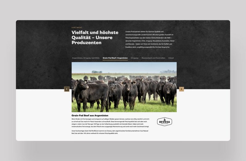 Eine besondere technische Herausforderung war die "interaktive Kuh" auf der Website, die alle angebotenen Fleischstücke durch Klick auf den jeweiligen Körperteil mit passendem Bild und Text anzeigt.