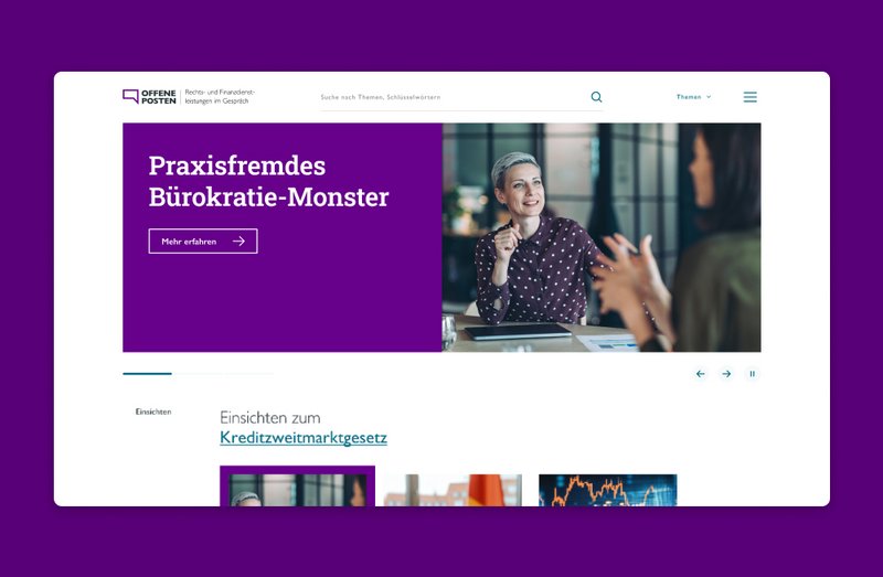 Ziel des Projekts war es, vorhandene fachlich fundierte Positionen des Verbands aus der internen Logik einer Verbandswebsite zu lösen und in einer offenen, journalistisch geprägten Plattform sichtbar zu machen. OFFENE POSTEN soll politische und regulatorische Themen verständlich einordnen, neue Zielgruppen wie Politik, Medien und Öffentlichkeit erreichen und zugleich strategische Anknüpfungspunkte zur Verbandsarbeit schaffen – ohne als klassisches Verbandsorgan wahrgenommen zu werden.